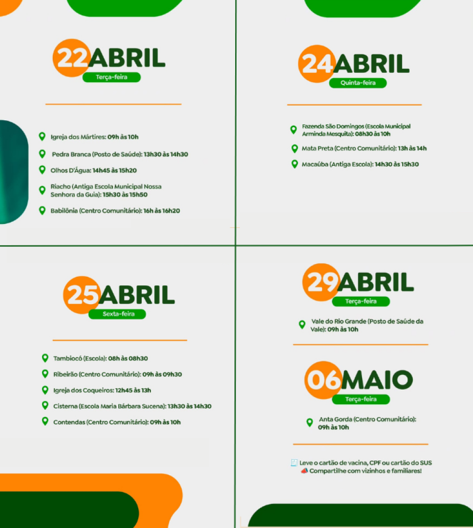 Além disso, na área urbana, a vacinação segue normalmente para todos os grupos prioritários. Pensando em quem precisa de apoio para se deslocar até os postos, a Central de Imunização (localizada na Avenida 20 de Agosto, ao lado do SAMU) funcionará das 13h às 19h.