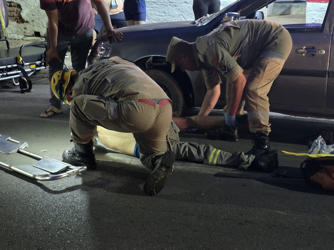 Na noite desta quarta-feira (23), um trabalhador foi atropelado enquanto trocava o pneu de um carro em frente a uma borracharia na Avenida Ricardo Paranhos, no bairro Pio Gomes, em Catalão (GO).