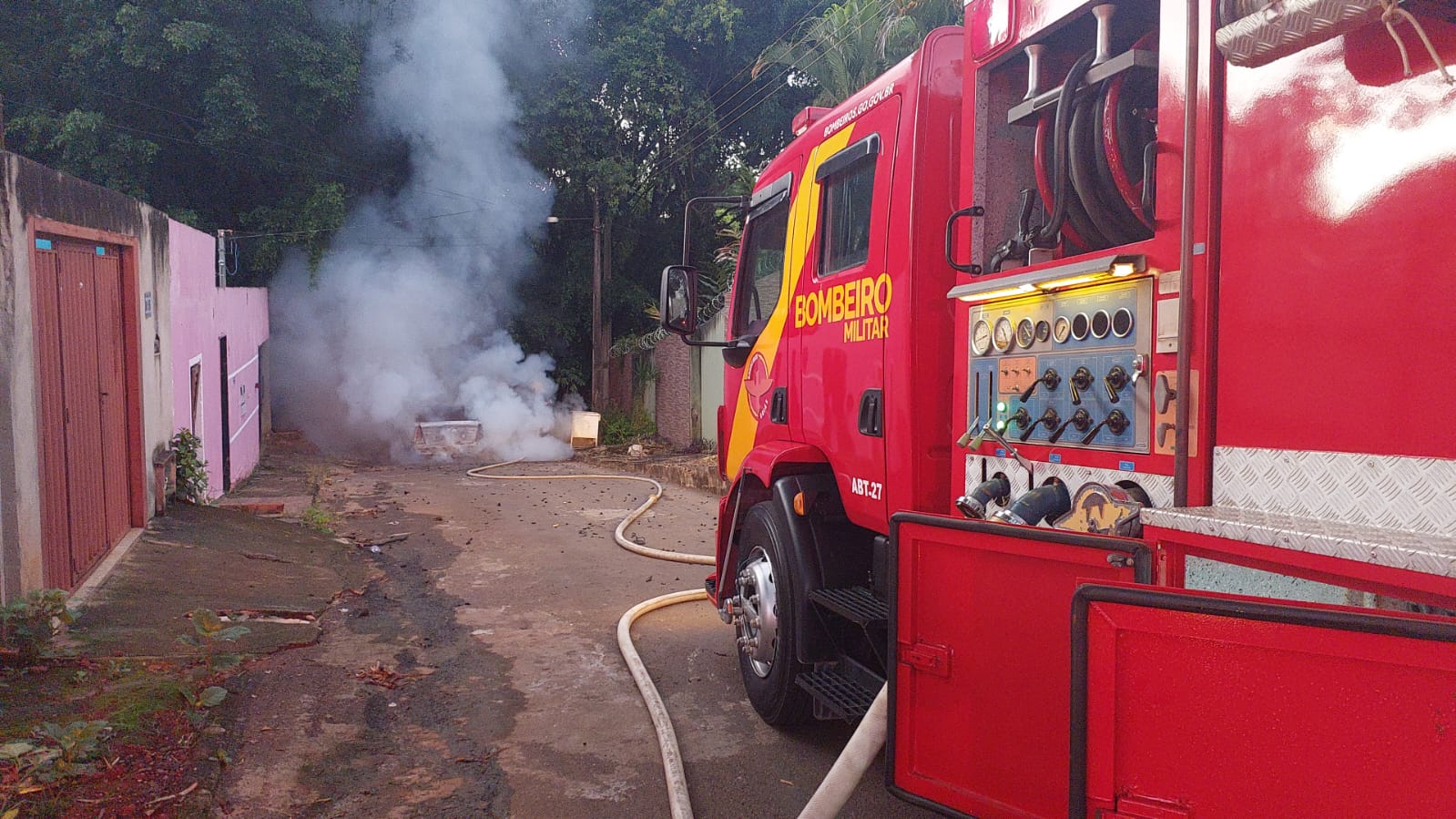 Quando os bombeiros chegaram, o carro já estava completamente tomado pelas chamas. A equipe utilizou Equipamentos de Proteção Individual (EPIs), dois lances de mangueiras e aproximadamente 1.000 litros de água para conter o fogo e fazer o rescaldo. A ação rápida evitou que o incêndio atingisse residências próximas.