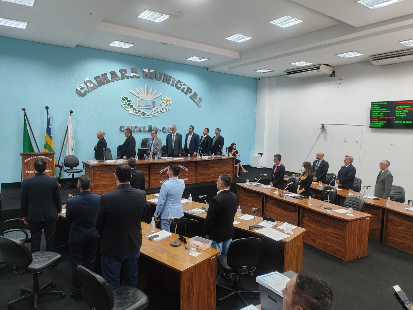 A sessão inaugural da Câmara Municipal de Catalão, realizada nesta terça-feira (4), reuniu autoridades do Executivo e Legislativo para marcar o início dos trabalhos da nova legislatura. O evento contou com a presença do prefeito Velomar Rios, do presidente da Câmara, vereador Jair Humberto, do líder do governo na Casa, vereador Gilmar Antônio Neto, e do deputado estadual Gustavo Sebba. Dessa forma, iniciou-se um novo ciclo de gestão política para o município.