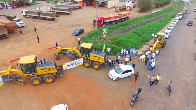 Com máquinas e o apoio de caminhoneiros Prefeitura fez manifestação e bloqueia ferrovia e acessos às mineradoras em Catalão (Foto: Prefeitura de Catalão)