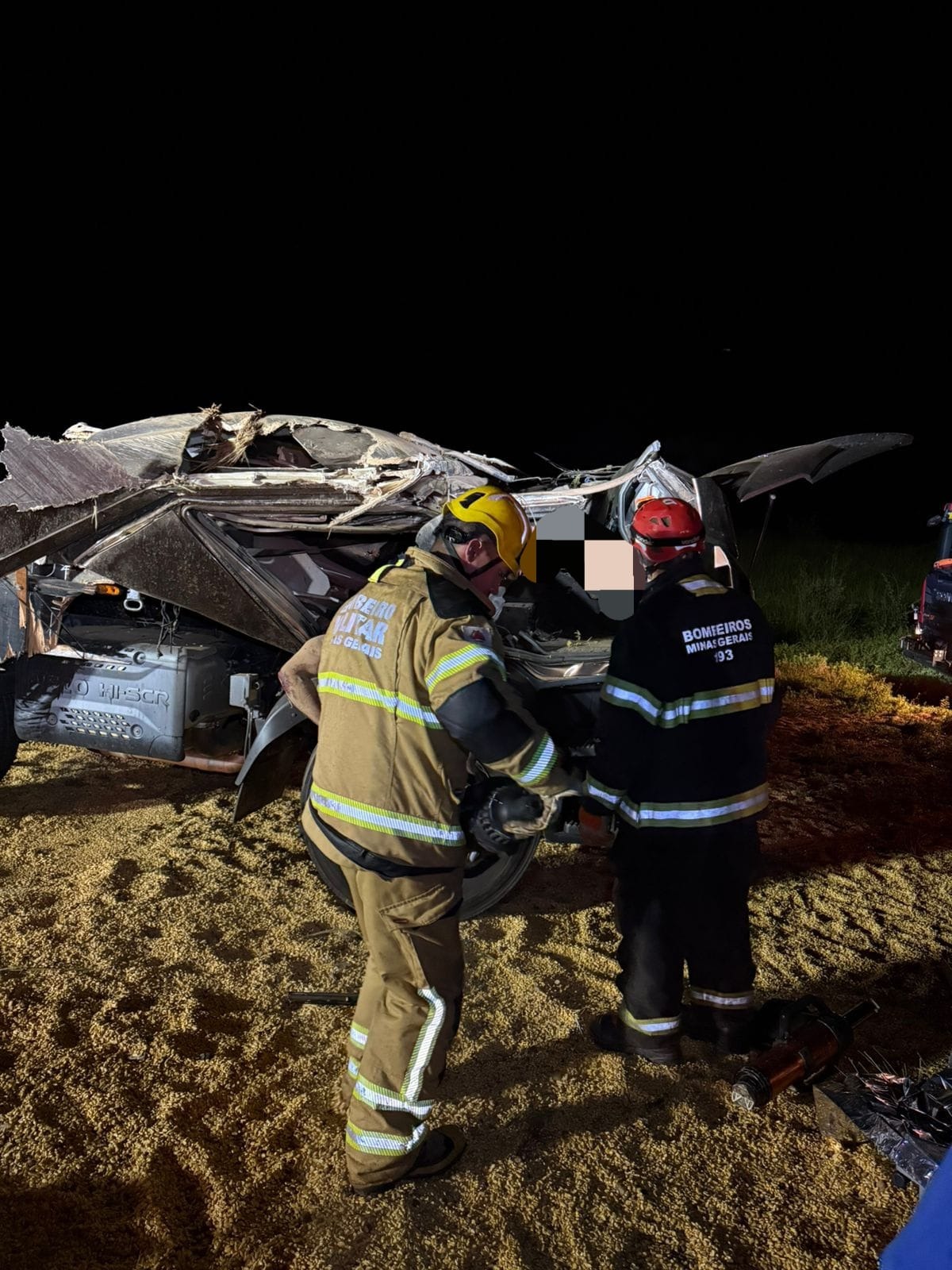 Segundo o Corpo de Bombeiros Militar de Minas Gerais, a carreta transportava milho. Após o acidente, o veículo ficou com as rodas voltadas para cima, o que dificultou o resgate. As vítimas, dois homens de 43 e 39 anos, ficaram presas na cabine e não resistiram aos ferimentos.