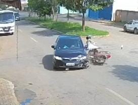 Neste sábado (3), um acidente entre um carro de passeio e uma motocicleta deixou uma jovem ferida no cruzamento da Rua 114 com a Avenida Espírito Santo, no bairro Aeroporto, em Catalão.