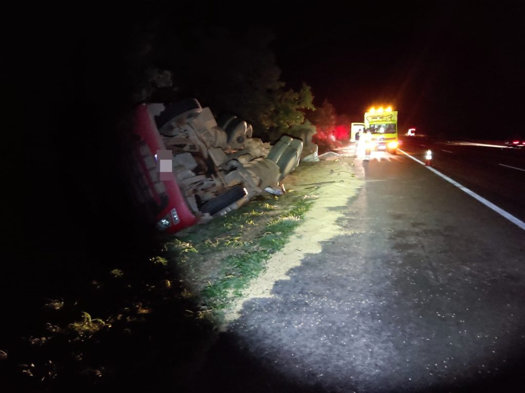 Um bitrem Volvo, carregado com soja, seguia de Brasília (DF) para Catalão (GO) quando o motorista perdeu o controle da direção, saiu da pista e tombou às margens da rodovia.