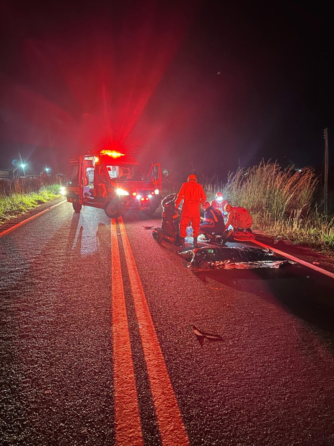 O corpo e a motocicleta ficaram sob responsabilidade da Polícia Militar Rodoviária para os procedimentos legais e a investigação do acidente.