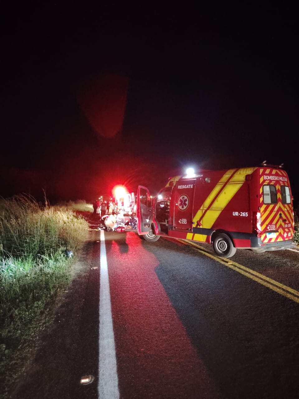 Os dois ocupantes da moto sofreram ferimentos graves. A primeira vítima, um homem de 47 anos, foi encontrada inconsciente. Ele apresentava fratura exposta na perna esquerda e traumatismo cranioencefálico (TCE) grave. O SAMU realizou os primeiros socorros com apoio da equipe de resgate e o levou ao hospital em estado crítico.