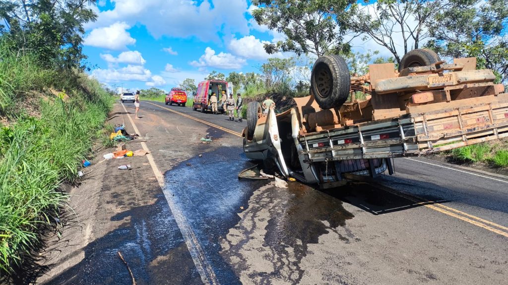 Segundo o relato, o acidente aconteceu após o condutor perder o controle do veículo, que acabou capotando na rodovia.