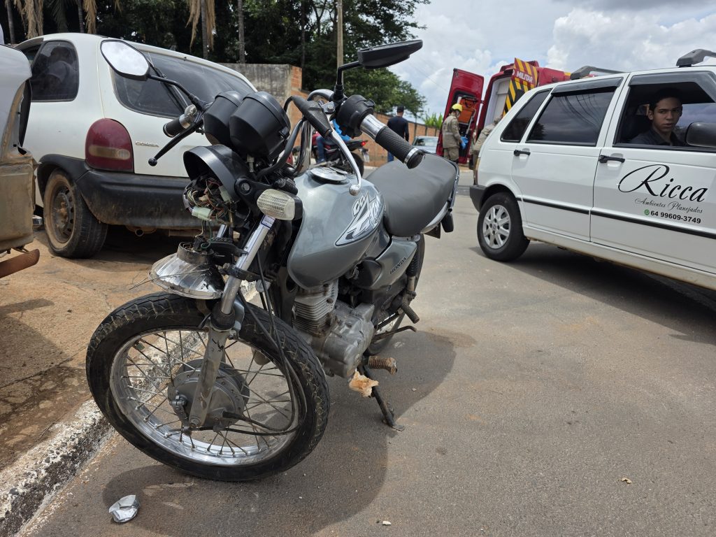 Acidente entre carro e moto deixa uma pessoa ferida no bairro Paineiras, em Catalão
