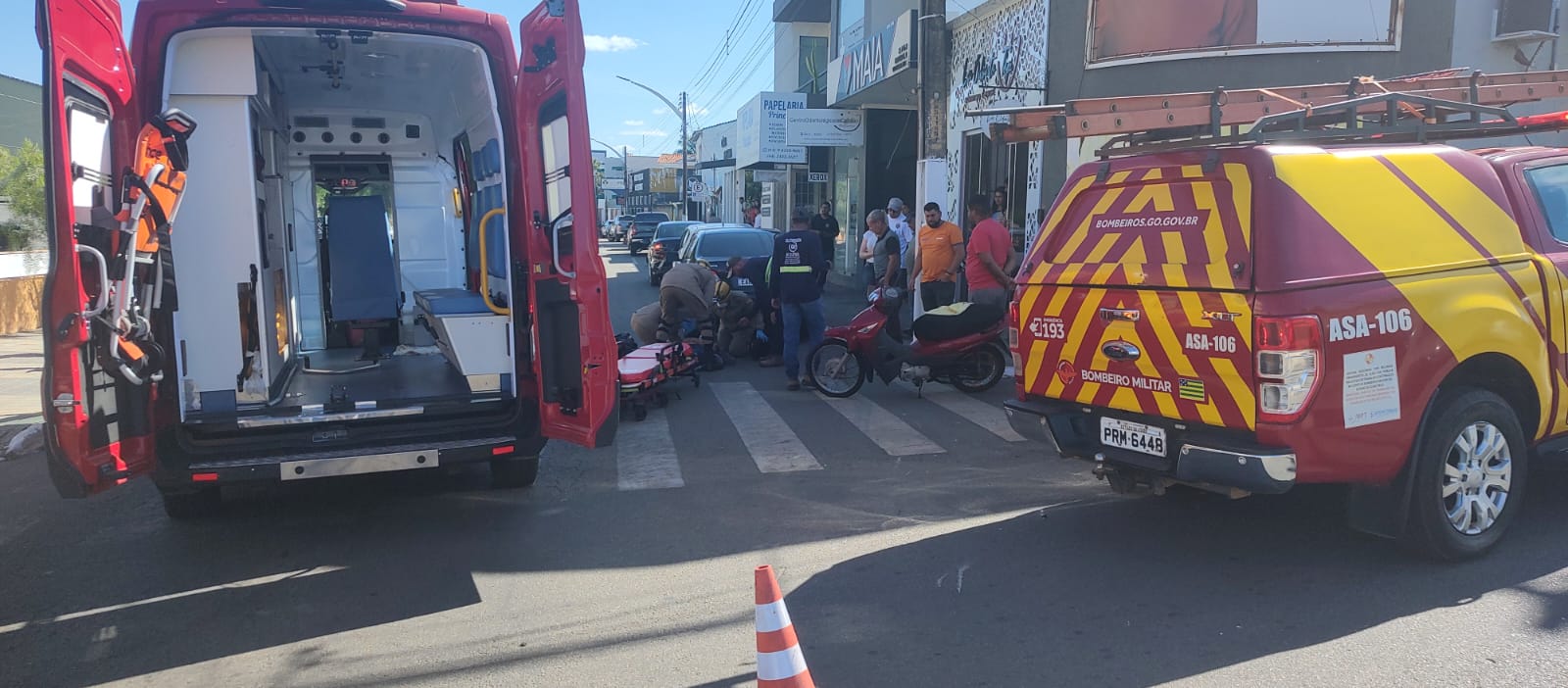 Uma mulher de 68 anos se feriu na tarde desta quarta-feira (2), após um acidente de trânsito envolvendo uma motocicleta e um carro. A colisão aconteceu por volta das 13h47, na Avenida Raulina Fonseca Pascoal, no centro de Catalão (GO).