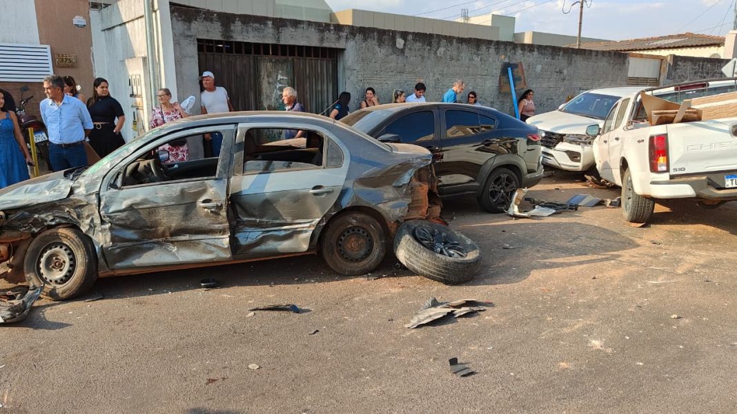 Acidente no centro Catalão envolve cinco veículos e deixa cinco pessoas feridas