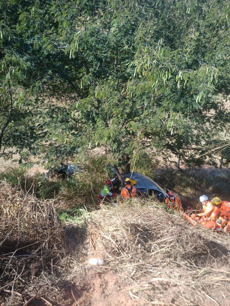 Equipes do 10º Batalhão Bombeiro Militar de Catalão foram acionadas para auxiliarem nas buscas, e de acordo com eles, eles auxiliaram no resgate de duas vítimas que estavam dentro de um carro de passeio que caiu de uma ribanceira de cerca de 10 metros de profundidade.