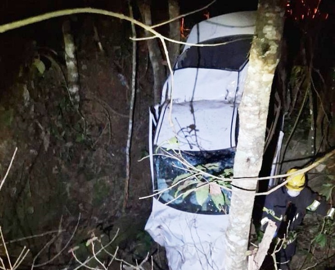 Ao chegar ao local, a equipe de bombeiros deparou-se com o veículo tombado em uma vala às margens da estrada, onde três estavam os ocupantes do veículo. As vítimas, um homem de 54 anos, uma mulher de 48 anos e um rapaz de 28 anos, já haviam sido retiradas do veículo por terceiros. Utilizando técnicas especializadas de salvamento terrestre, os socorristas realizaram amarrações, imobilizações e procederam à retirada do local de risco.