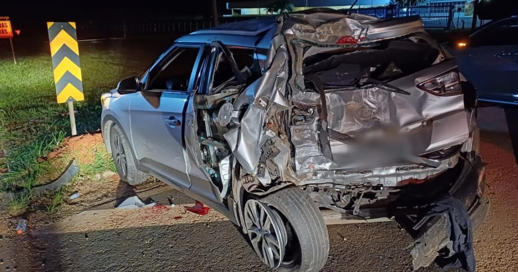 À noite, por volta das 21h, houve uma colisão traseira no km 287, próximo ao posto de fiscalização da PRF. Um caminhão carregado com soja, de Vazante (MG), bateu na traseira de um automóvel com placas de São Paulo/SP. Por isso, o carro ficou com a parte traseira bastante danificada.