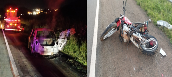 Já no domingo, 22 de outubro, por volta das 19h55, outro acidente ocorreu no km 261 da BR-050. Desta vez, o condutor de um Ford/Fiesta percebeu um foco de incêndio no veículo e decidiu parar no acostamento para tentar controlar as chamas. No entanto, o fogo se alastrou rapidamente e acabou consumindo todo o carro.