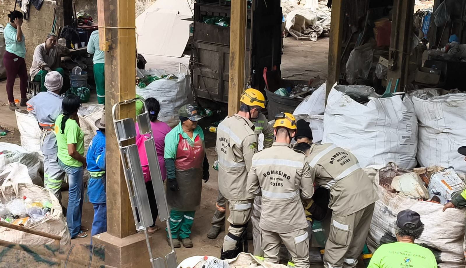 Bombeiros de Catalão resgatam vítima de acidente com máquina em usina de reciclagem