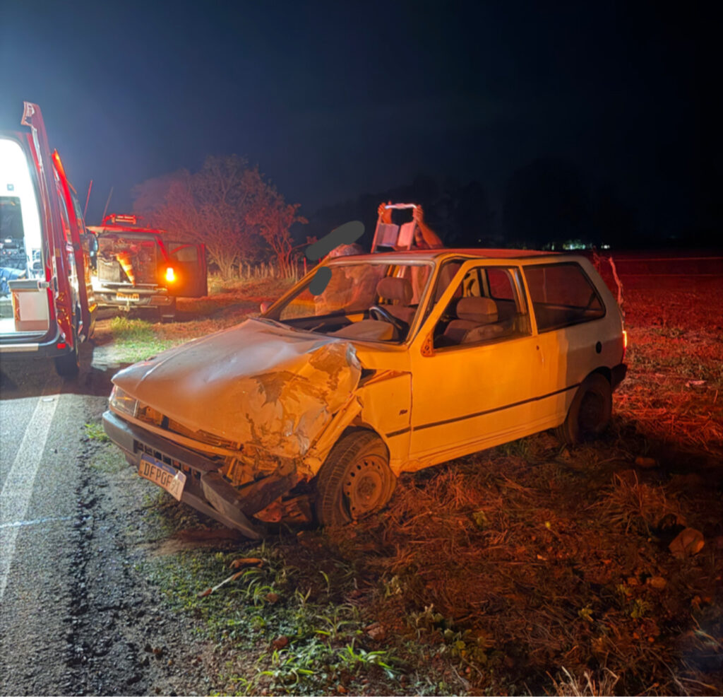 Enquanto isso, outra equipe atuou na retirada do motorista de 70 anos que ficou preso às ferragens. Os bombeiros abriram espaço, retiraram a vítima e a entregaram ao SAMU. Ele tinha cortes nos braços e nas pernas do lado esquerdo, mas permanecia consciente.