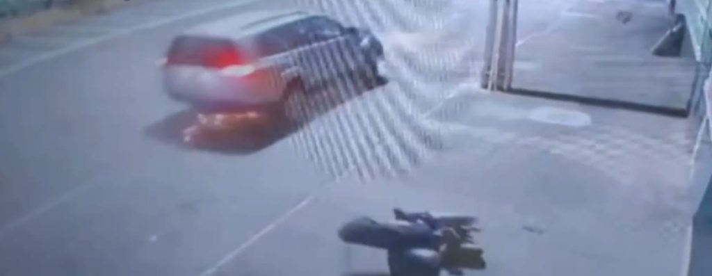 Uma câmera de segurança registrou o momento exato em que um carro atropelou Samuel Lopes Ferreira Rosa, de 16 anos, em Catalão (GO). Ele subia a Rua João Rabelo de Mesquita com sua motocicleta quando o motorista invadiu a pista e o atingiu violentamente. O impacto lançou o adolescente contra a calçada e fez o capacete voar por vários metros.