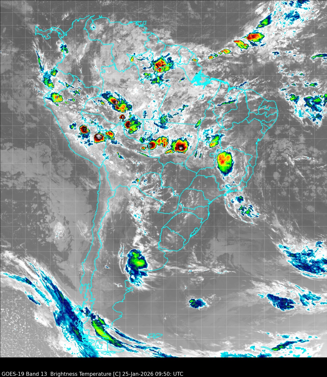 A imagem de satélite registrada na manhã deste domingo (25), às 7h30, indica instabilidade atmosférica em todo o Estado de Goiás. O cenário aponta nebulosidade variável e condições favoráveis para pancadas de chuva ao longo do dia.