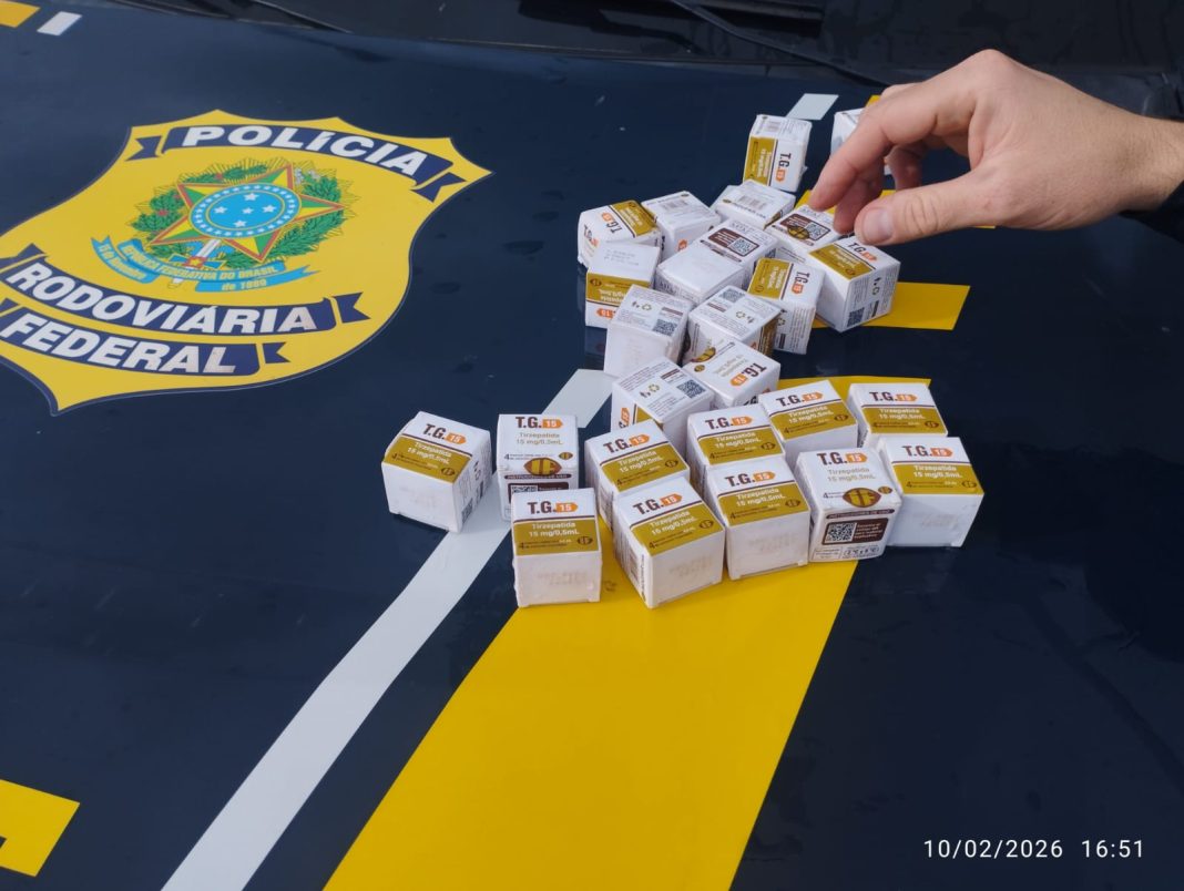 A Polícia Rodoviária Federal (PRF) apreendeu 26 ampolas de Tizerpatida TG na noite desta terça-feira (10), na BR-050, em Catalão. A Anvisa proíbe a comercialização do medicamento no Brasil.