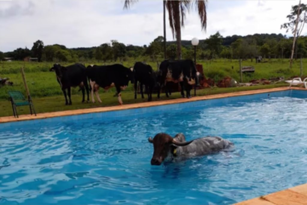 Uma vaca leiteira, chamada pelos donos de Mimosa, caiu em uma piscina de uma fazenda, em Anápolis. O caso inusitado que aconteceu nesta semana, precisou do auxílio dos bombeiros para que o animal fosse retirado do local sem nenhum ferimento.