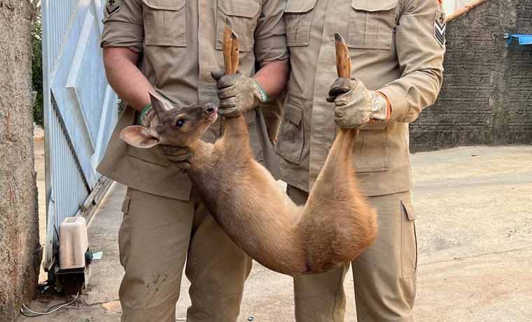 Equipes do Corpo de Bombeiro de Anápolis foram acionados na manhã deste sábado(17), para resgatar um veado-campeiro que apareceu em um quintal de uma residência na Rua Alarico Verano no bairro Alexandrina, em Anápolis.