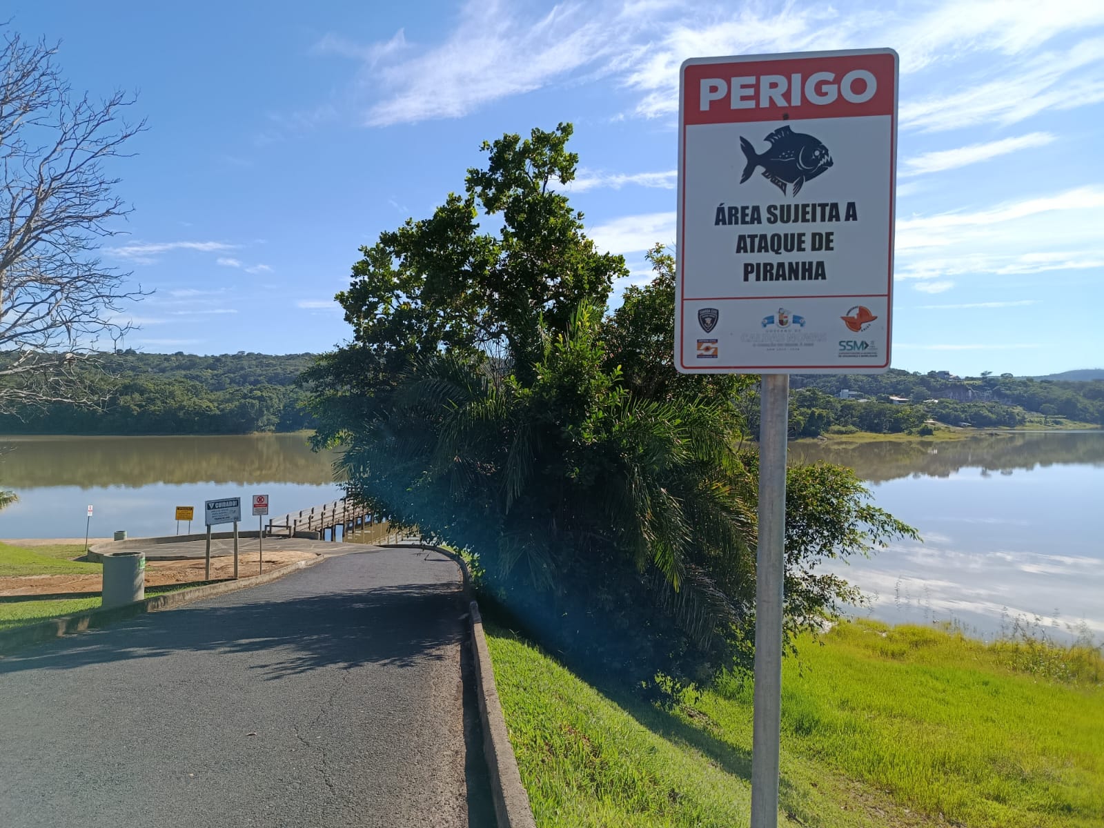 O Corpo de Bombeiros destacou que já havia realizado a sinalização preventiva em toda a orla do lago com placas de advertência alertando sobre o risco de ataques de piranhas, justamente para orientar e garantir a segurança dos frequentadores.
