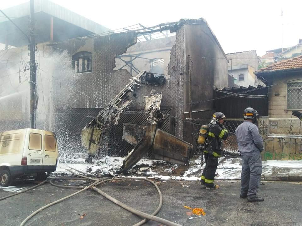 Casas e veículos que estavam na rua onde a aeronave caiu também foram atingidos. O fogo chegou a se alastrar pelo asfalto.