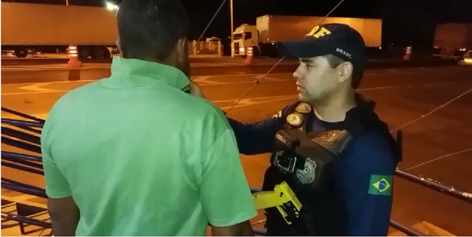 Policial Rodoviário Federal de Catalão (PRF GO) realizando teste de alcoolemia no Posto de Fiscalização em motorista que apresentava sinais de embriaguez. (Foto: Reprodução/Divulgação da PRF).