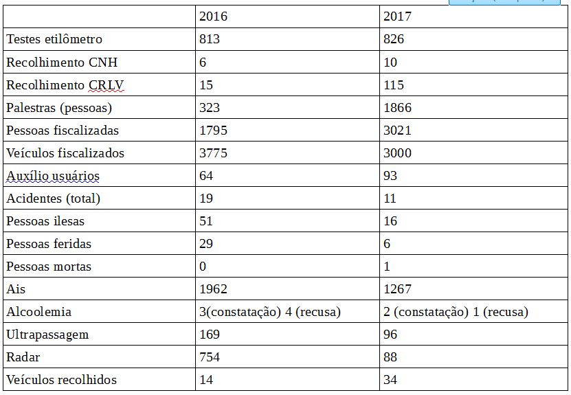 A PRF de Catalão registrou uma diminuição de quase 60% no número de acidentes, apesar da fatalidade do registro de uma pessoa morta em 2017 e nenhuma em 2016. No ano passado foram 19 acidentes registrados e 11 em 2017.