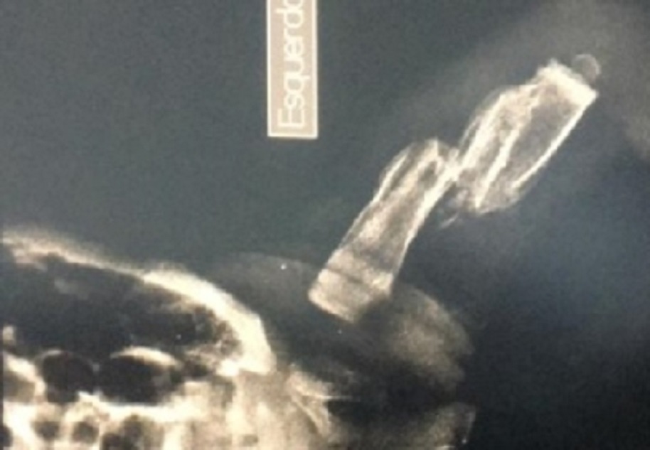 Radiografia mostra fratura na perna esquerda da babê que está internada em Goiânia. Foto: TV Anhanguera/Reprodução