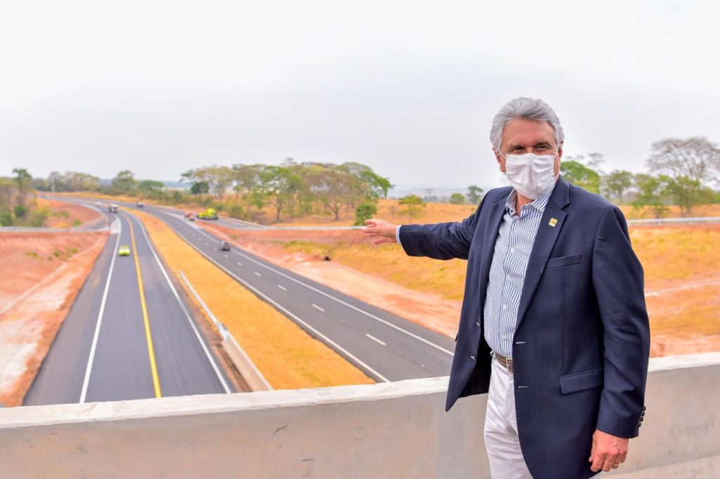 Ao lado de representantes do Ministério da Infraestrutura, da ANTT e da PRF, o governador Ronaldo Caiado participa da entrega de mais uma etapa da duplicação da BR-050, que liga os municípios de Catalão e Cumari: ao todo, já foram inaugurados 198 quilômetros da rodovia e restam apenas 21 para a conclusão total do empreendimento, que está sob a responsabilidade da concessionária ECO050. Junior Guimarães/Reprodução.