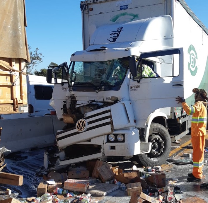 BR-050: ACIDENTE ENTRE 5 VEÍCULOS DE CARGAS DEIXOU MOTORISTA DE 30 ANOS GRAVEMENTE FERIDO