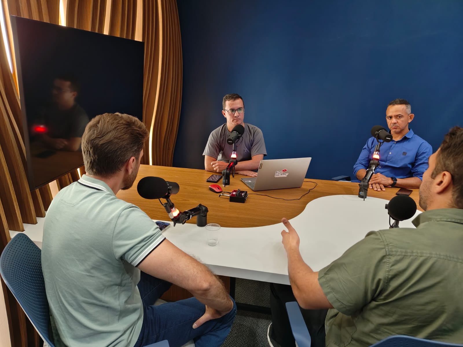Badiinho Moisés conduziu entrevista com o presidente da Alego, Bruno Peixoto (UP), deputado Gustavo Sebba (PSDB) e com o verador Helson Barbosa ‘Caçula’. Foto: Badiinho Moisés