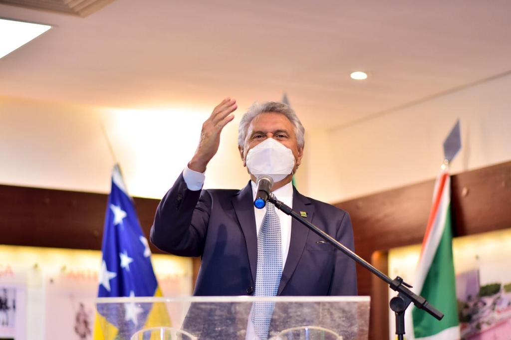 O governador Ronaldo Caiado durante lançamento da nova etapa do Programa Nota Fiscal Goiana e do Time Goiano do Coração: “Nada melhor àquele que veste a camisa do time, que vista também a camisa do Estado de Goiás”. Foto: Júnior Guimarães.