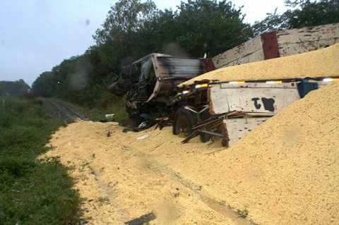 Um caminhão e um trem colidiram na GO-123, próximo a Caldas Novas na noite de sábado (25). A carreta estava carregada de soja no momento do acidente. O motorista teve ferimentos leves.