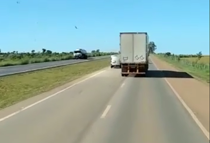 Conforme está no vídeo, o depoimento do motorista que ficou bastante assustando, e agradecendo o livramento, alegou que tentou por diversas vezes comunicar a Polícia Rodoviária Federal (PRF) através do 191, porém sem sucesso.