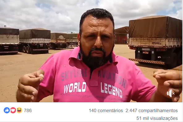 No vídeo gravado por ‘Chorão’ na tarde desta terça-feira (23), ele afirma que irá parar os caminhoneiros em Catalão, impedindo que eles sigam viagens pelo fato do descumprimento do piso mínimo de frete e disse estar avisando com antecedência para que ele não seja o vilão entre classe.