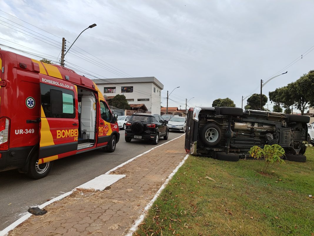 Caminhonete tomba após colisão na Ricardo Paranhos, em Catalão