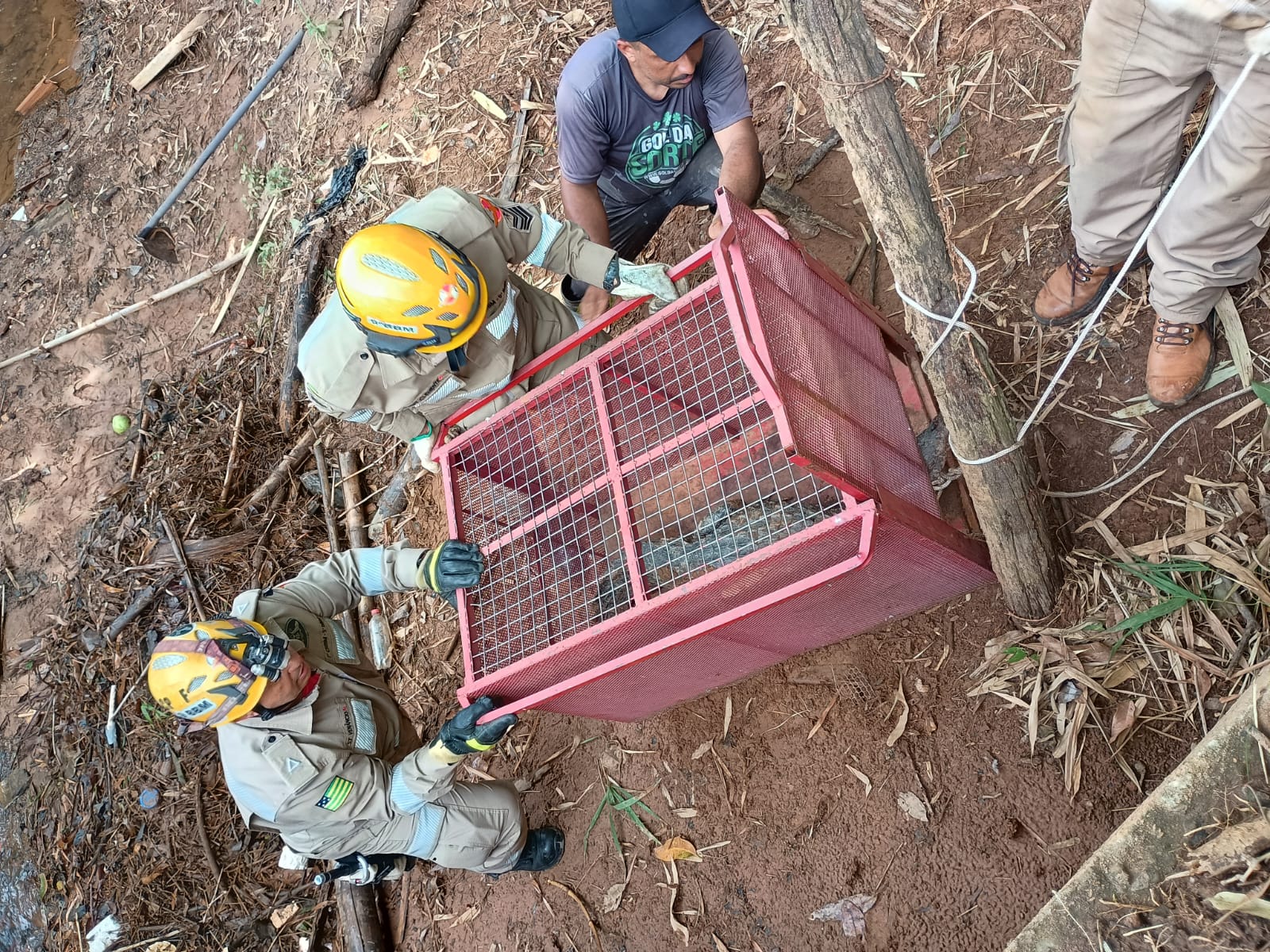 Trabalhador encontra jacaré em córrego e aciona bombeiros em Caldas Novas – Foto: 9º BBM