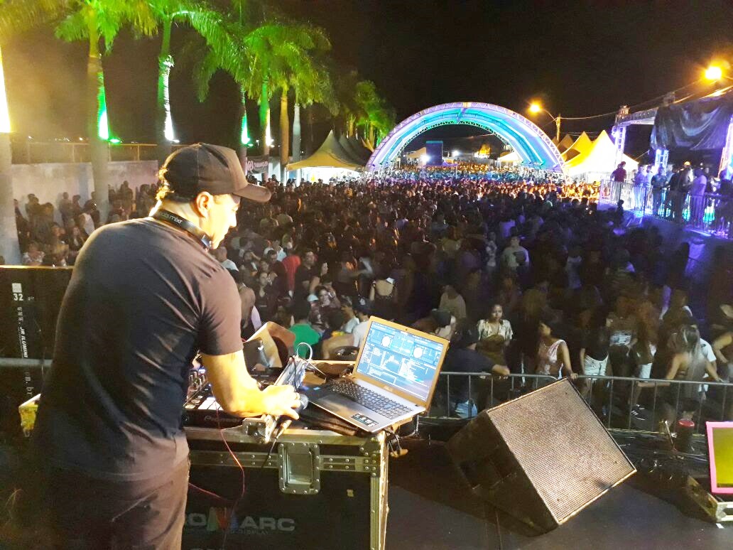 DJ Celso de Camboriú SC também esquentou os foliões no Sambódromo de Três Ranchos. (Foto: Reprodução)