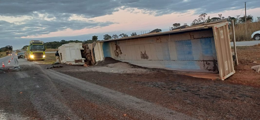 O acidente deixou parte da rodovia interditada, exigindo atenção dos motoristas que passavam pelo trecho. As causas do tombamento ainda estão sob investigação.