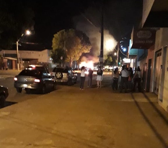 Um veículo de passeio pegou fogo na noite deste domingo (29), na Avenida Dr. Lamartine Pinto de Avelar, próximo ao SENAI. O fato aconteceu bem na hora em que fiéis de uma igreja saiam de um culto, e uma mulher registrou em seu aparelho celular e compartilhou nas redes sociais.