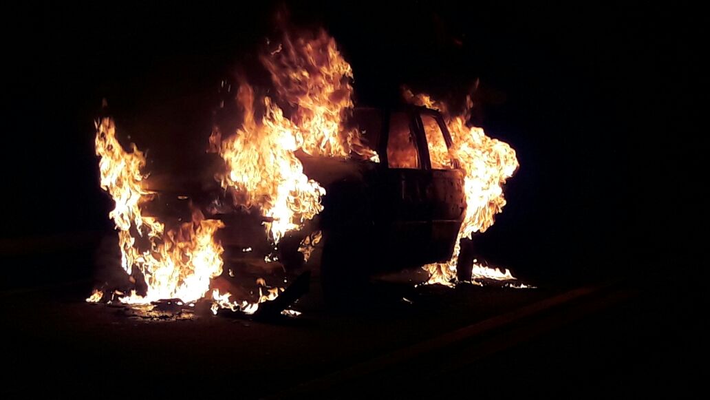O motorista que estava sozinho até tentou conter as chamas, porém sem sucesso e rapidamente o veículo estava todo queimado.