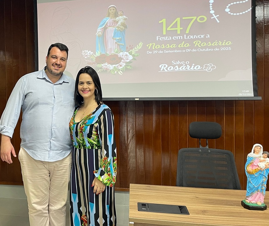 Pauta: o casal de festeiros da 147ª Festa em Louvor a Nossa Senhora do Rosário, Thadeu Aguiar e Hannayma fazem anúncio do calendário da Festa do Rosário 2023