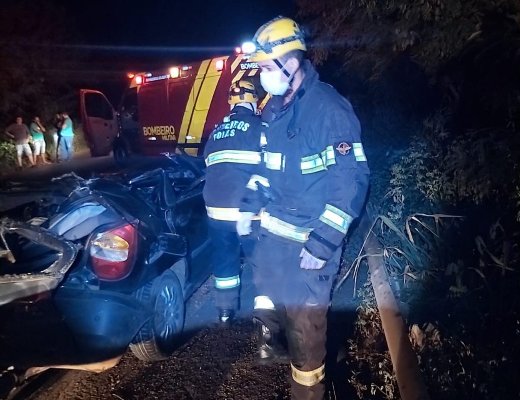 Ainda de acordo com os bombeiros, os corpos que estavam no carro ficaram presos às ferragens.