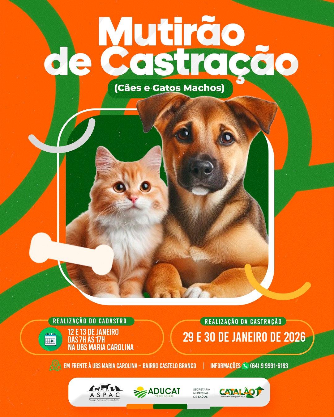 Com foco no controle populacional e na promoção da saúde pública, a ASPAC e o Centro de Castração realizam, nos dias 29 e 30 de janeiro, um novo mutirão com a unidade móvel Castramóvel. A ação ocorrerá em frente à UBS Maria Carolina, no bairro Castelo Branco.