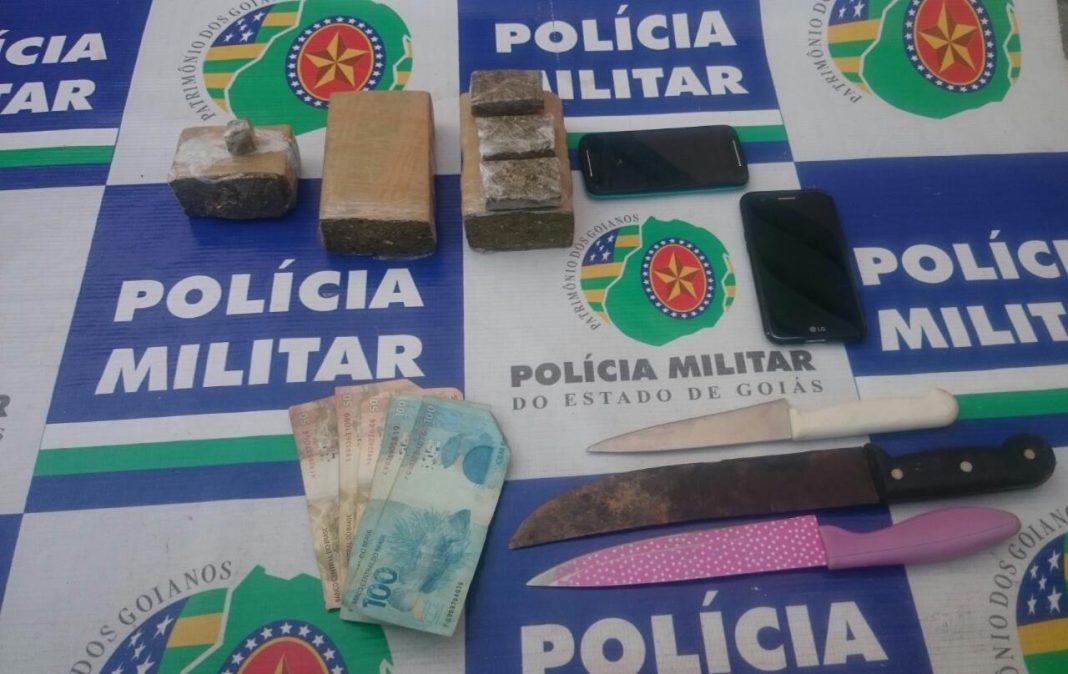 A PM também informou que durante a realização de mais diligências, outro traficante de drogas foi abordado no Bairro Ipanema e também foi flagrado portando outras quatro porções de maconha, além de R$ 300 reais em dinheiro, um celular e três facas.