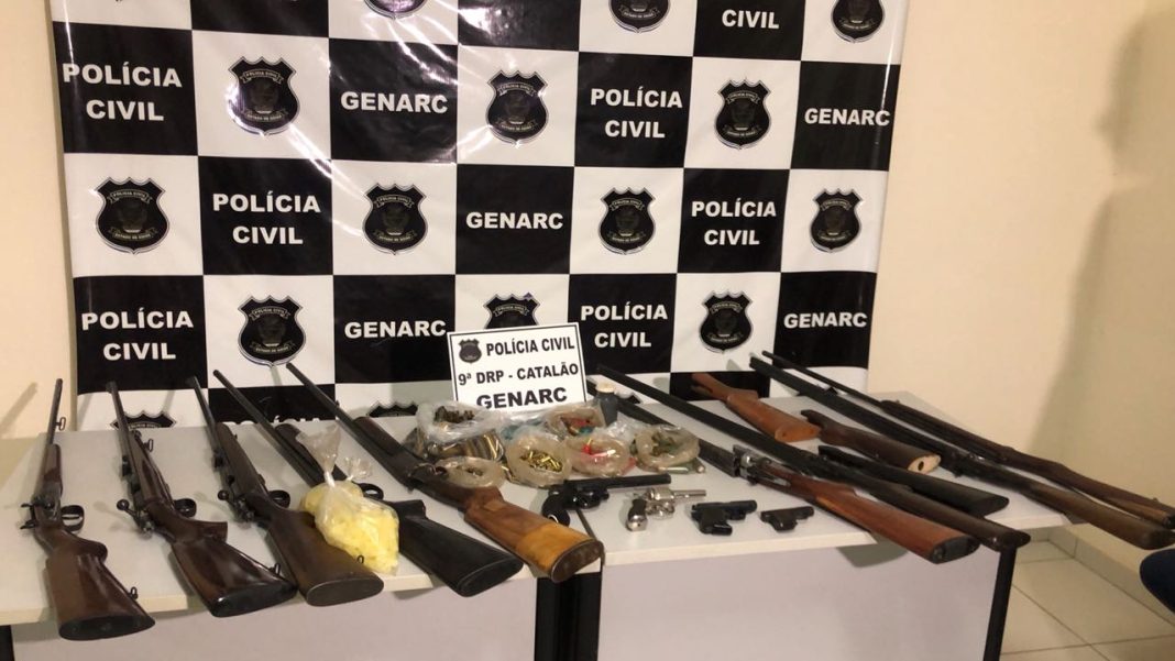 A Polícia Civil de Goiás, através do Grupo Especial de Repressão a Narcóticos (GENARC) e 9ª Delegacia Regional de Polícia, na tarde de hoje, quarta-feira (04), após três meses de investigação, efetuou a prisão em flagrante um homem de 54 anos, em sua residência, situada na Rua Antônio Salles, bairro São João, local onde foram encontrados e apreendidos em sua posse, pela equipe do Genarc, doze armas de fogo e mais de quatrocentas munições, material esse sem autorização legal.