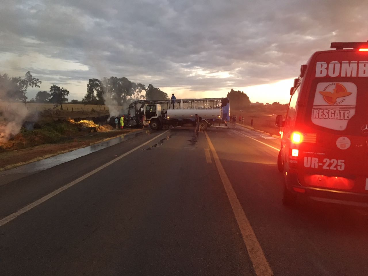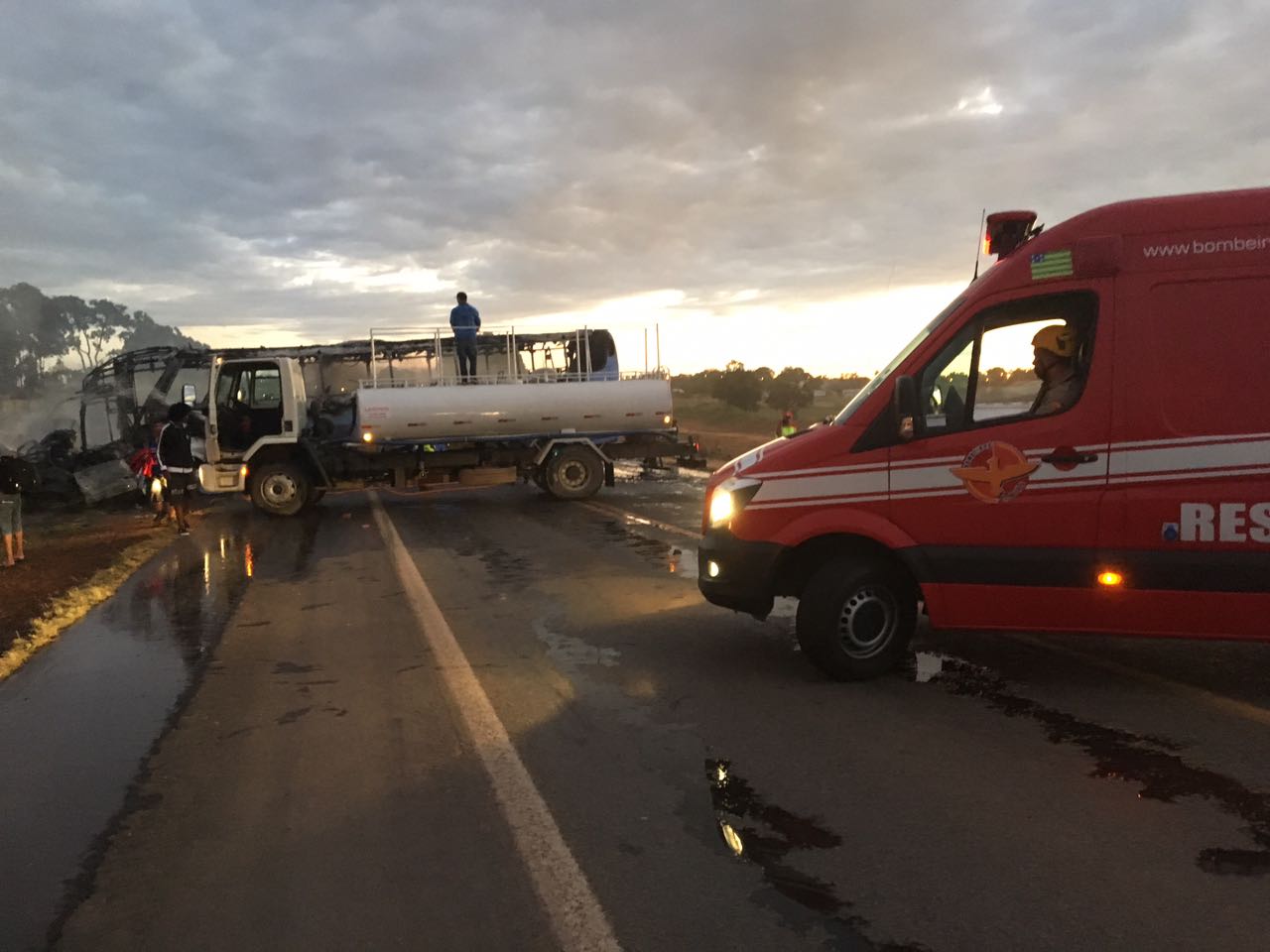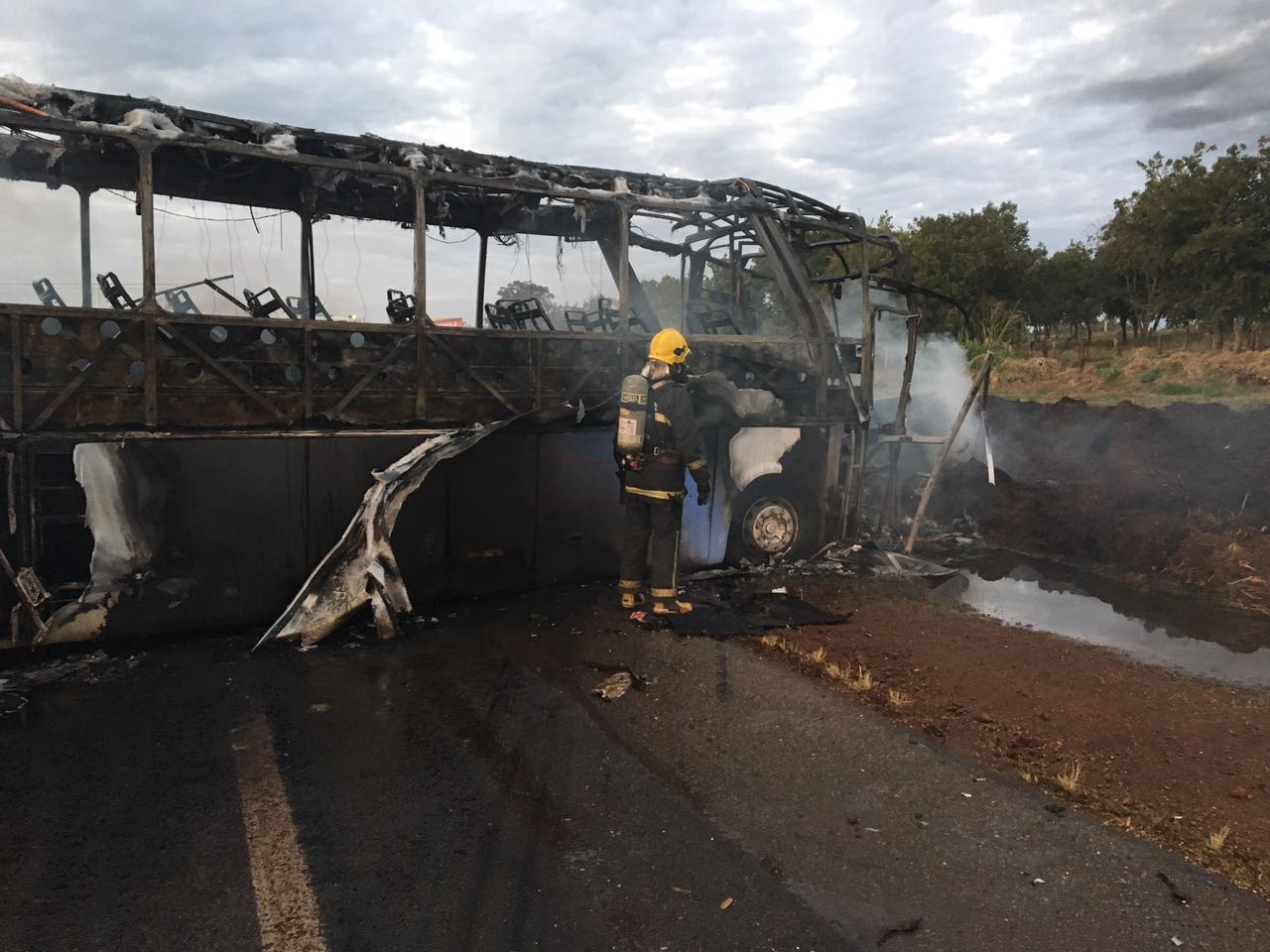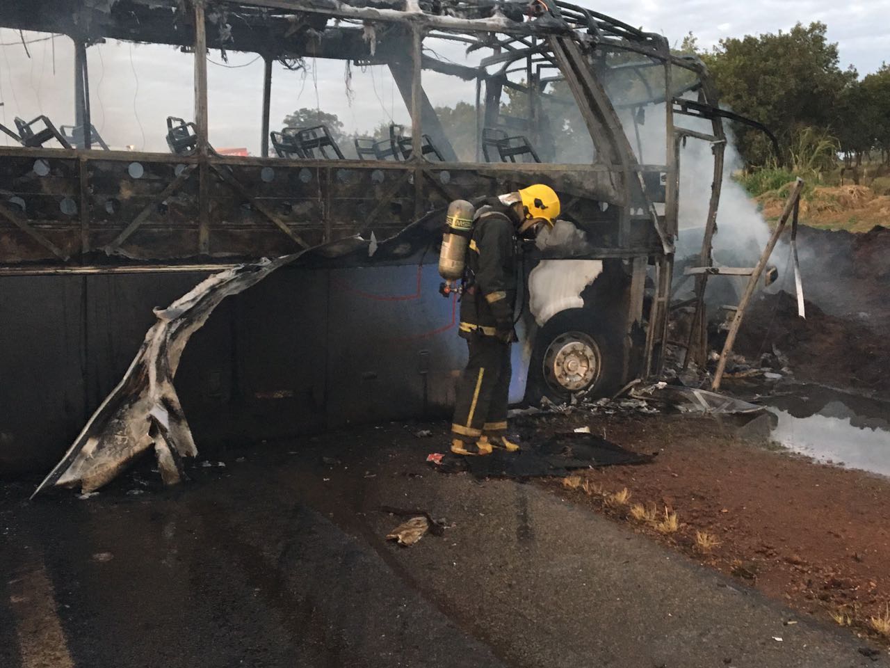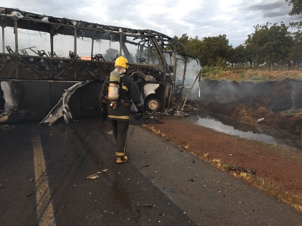 O condutor da caminhonete ficou preso às ferragens e foi carbonizado pelas chamas. Os militares do 10º Batalhão de Bombeiro Militar de Catalão, informaram também, que os passageiros do ônibus conseguiram sair antes que o mesmo se incendiasse por completo.