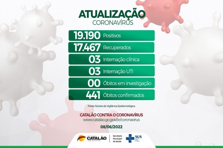 Os dados apresentados no final da tarde desta quarta-feira (08), também revelaram que mais 161 pessoas receberam o diagnóstico positivo para o coronavírus em um prazo de 24 horas. Desde o início da pandemia Catalão soma 19.190 casos positivos e 441 mortes pela doença, e quase 17.500 pessoas conseguiram se recuperar.